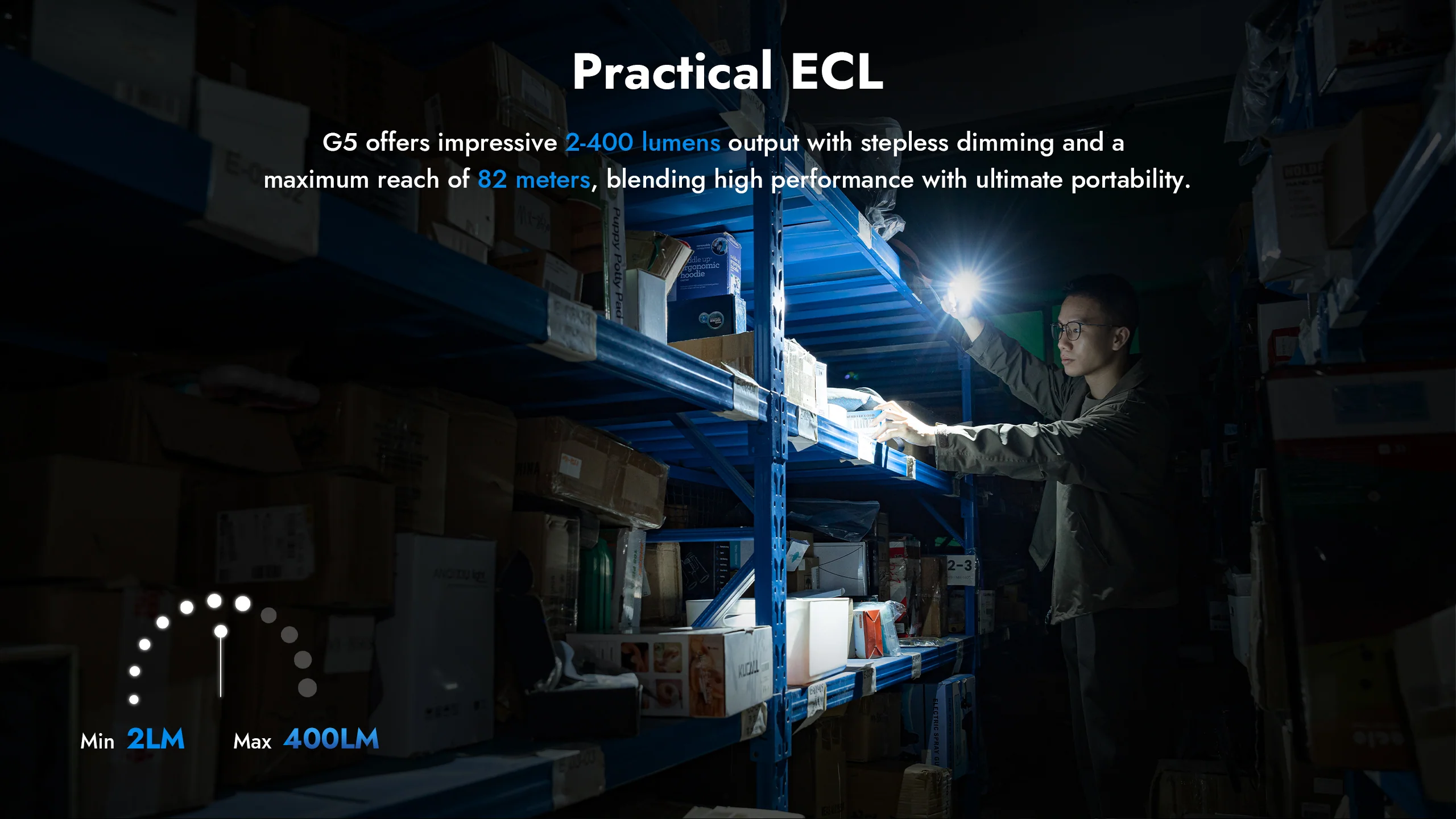 Ultra-Bright & Powerful – Delivers up to a maximum 400 lumens with a beam distance of 82 meters, providing clear illumination for indoor and outdoor environments.