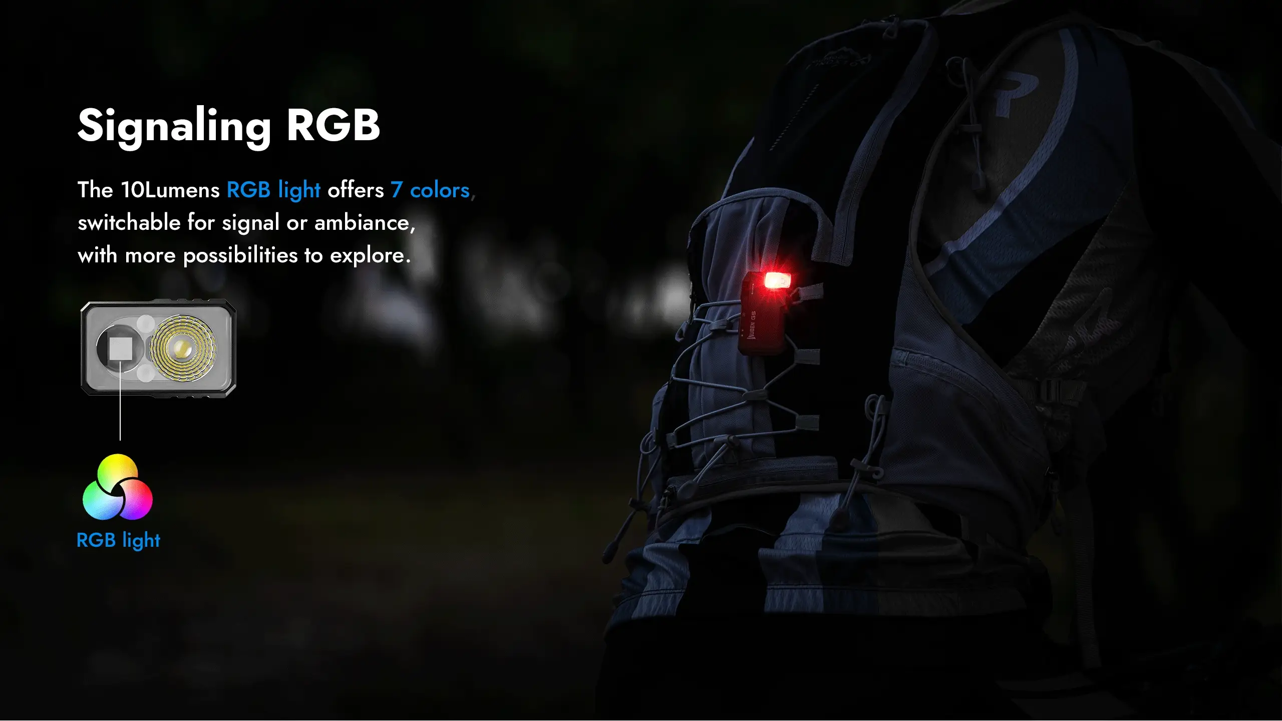 Multi-Mode Lighting – Switch between white light, RGB, and beacon mode for various needs.